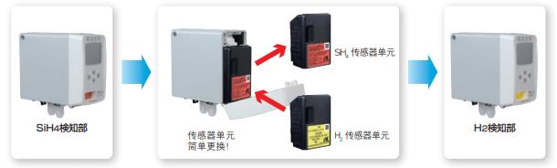 通過完全共享傳感器單元,只需更換傳感器單元即可改變可燃?xì)怏w、毒性氣體、氧氣等檢測對象氣體!