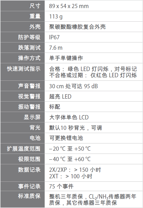 ● 具備天鷹2X 單氣體檢測儀的所有優勢特性