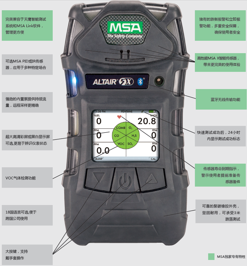 美國MSA梅思安 天鷹5X 多種氣體檢測儀 產(chǎn)品特點: