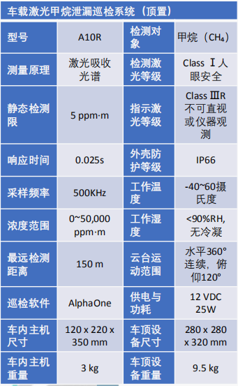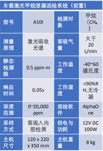 恒晉 A系列車載激光甲烷泄漏巡檢系統產品技術參數: