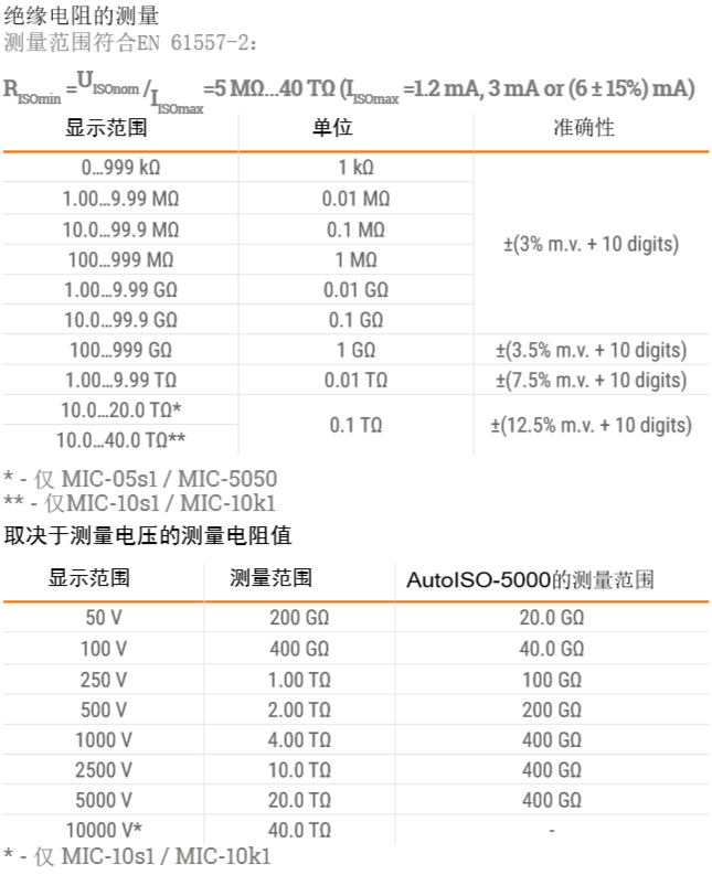 波蘭SONEL(索耐) MIC-10s1 / MIC-10k1 / MIC-05s1 / MIC-5050絕緣電阻表 相關參數: