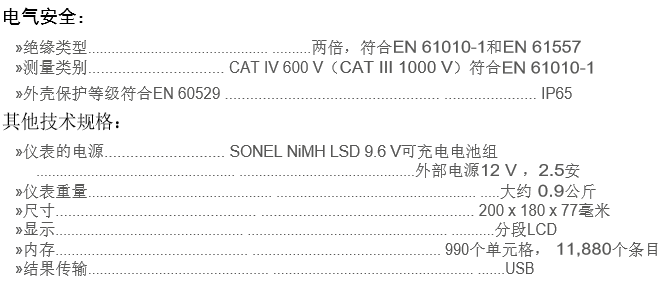波蘭SONEL(索耐) MIC-2501 絕緣電阻表 相關參數: