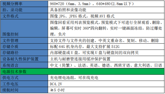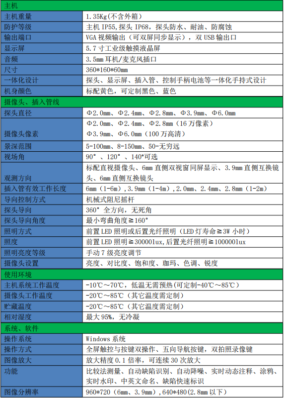 WS-Y 智能百萬高清系列工業視頻內窺鏡 產品參數: