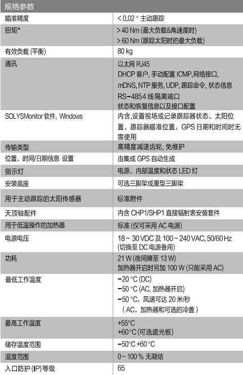 荷蘭Kipp&Zone SOLYS Gear Drive太陽跟蹤器 產(chǎn)品參數(shù):