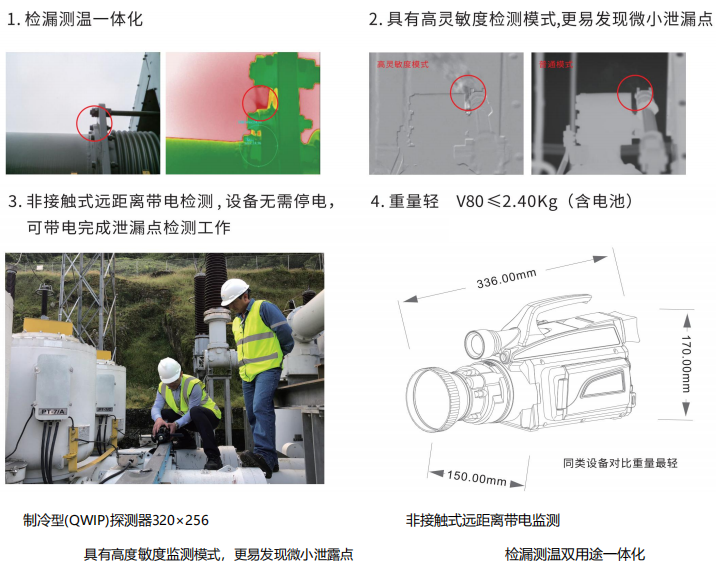 V80 SF6 氣體紅外熱成像檢漏儀 產(chǎn)品特點: