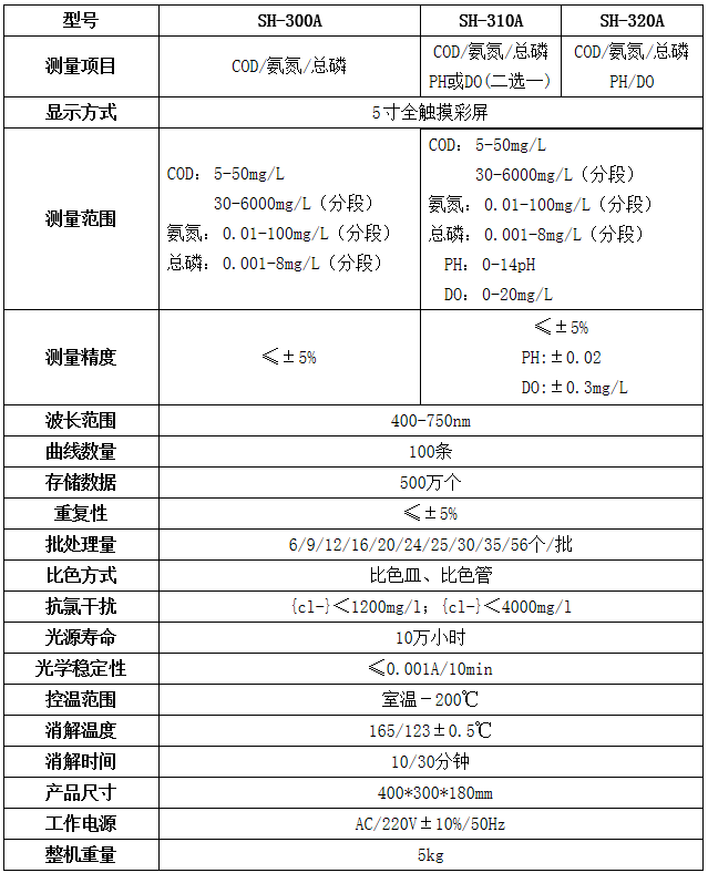 盛奧華 SH-310A型水質(zhì)多參數(shù)速測(cè)儀 技術(shù)指標(biāo):