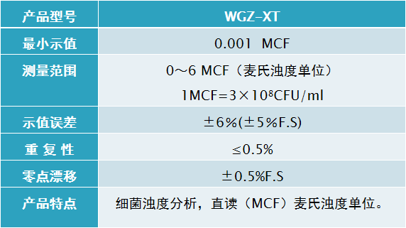 齊威 WGZ-XT 細(xì)菌濁度儀 產(chǎn)品參數(shù):
