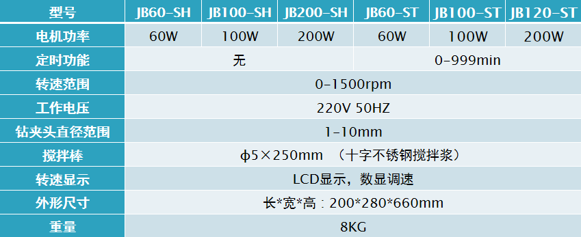 齊威 JB-SH/JB-ST系列數(shù)顯增力攪拌機 產(chǎn)品參數(shù):