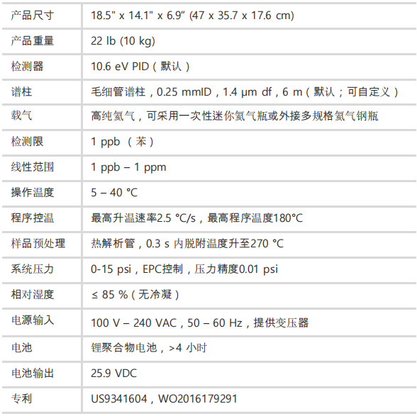NovaTest P300-L 小型氣相色譜 技術(shù)參數(shù):