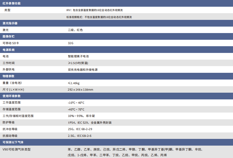 愛(ài)爾蘭NovaTest V90甲烷等氣體紅外熱成像檢漏儀 技術(shù)參數(shù):