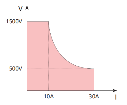 在額定輸出功率范圍內電源可自動調節輸出量程,是傳統電源輸出范圍的 3 倍。例如 15kW/1500V 型號電源,當設置 500V 時,傳統電源電流量程為 10A,而 DH17800A 系列電流可自動將量程擴展到 30A,保持 15kW 功率輸出。