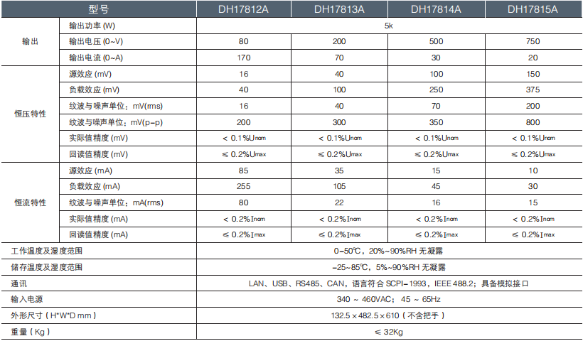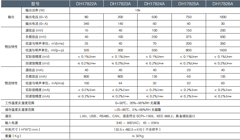 大華電子 DH17800A 系列大功率可編程直流電源 技術參數: