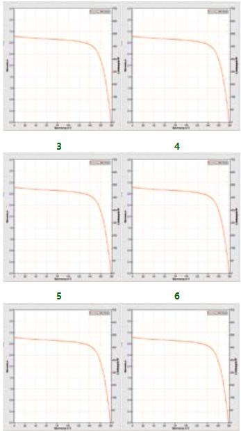 ■ 可顯示(計算后)參數包括:峰值功率Ppk內部串聯阻Rs,內部并聯阻抗Rp,瞬時Upmax, Ipmax, Pmax, Uoc, Isc, FF,Tmod, Tref, Eeff,IV特性曲線圖。