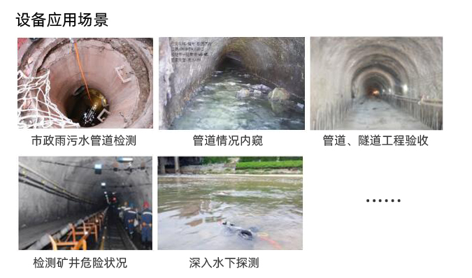- 多管徑場(chǎng)景適用:管道非開挖檢測(cè)設(shè)備,用于代替人員,進(jìn)入城鎮(zhèn)雨、污水排水管道、箱涵、暗渠進(jìn)行管網(wǎng)檢測(cè),適用管徑DN150-3000
