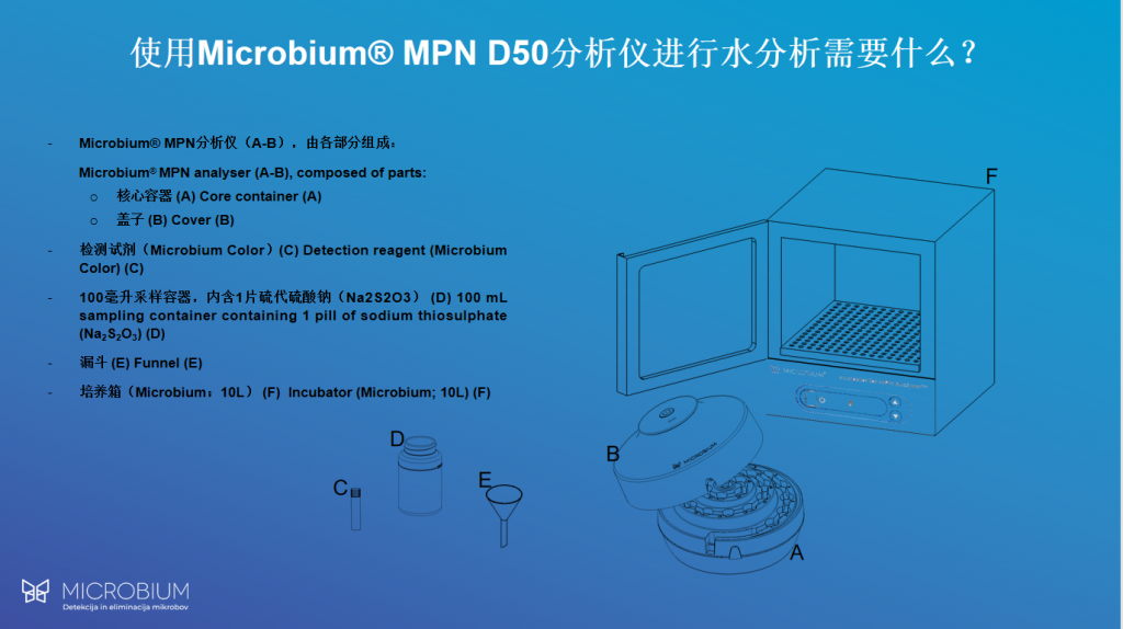 Microbium? MPN D50 分析儀是世界上領先的能夠?qū)︼嬘盟?、廢水和加工水中的大腸桿菌和大腸菌群進行檢測和定量的自動化設備。