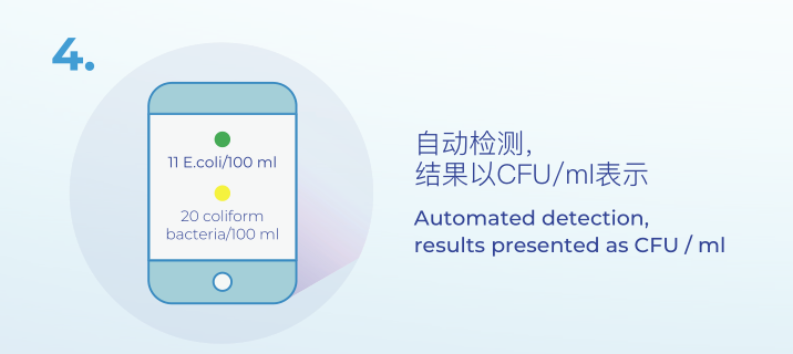 它是基于MPN法(最可能數(shù)法),根據(jù)ISO 9308-2,MPN法是定量測定水中大腸桿菌和大腸菌群的標準實驗室方法。在這種方法中,所取水樣被稀釋數(shù)倍,然后將稀釋液接種到培養(yǎng)基的瓊脂上。 在37℃下培養(yǎng)后,對按單個稀釋度生長的菌落進行計數(shù),然后根據(jù)稀釋度重新計算水樣中的初始濃度。該方法本身非常耗時,需要使用大量的實驗材料,在實驗室進行,工作人員必須具備相應的微生物學知識。