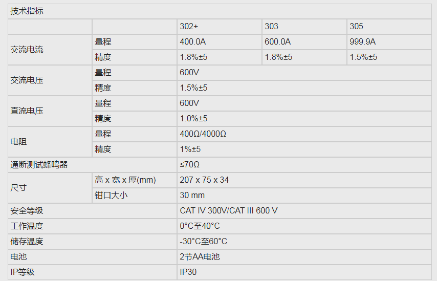 Fluke(福祿克) Fluke 305 鉗形表 產品規格: