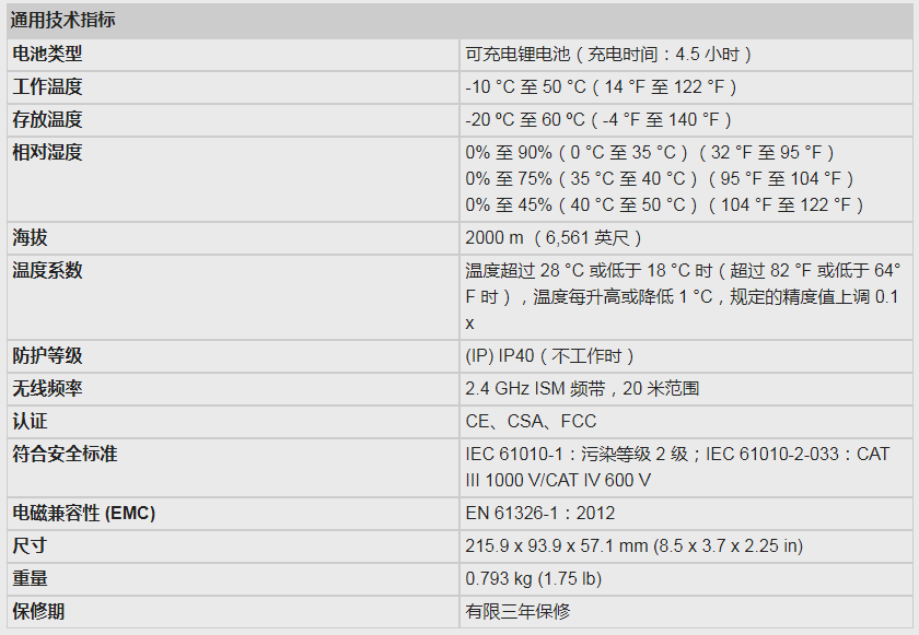 Fluke(福祿克) 279FC 經(jīng)濟(jì)型萬用表熱像儀 產(chǎn)品規(guī)格: