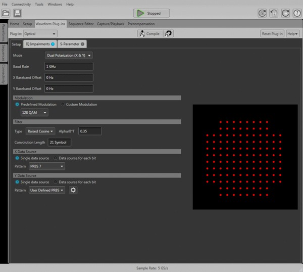 生成所需信號只是相干光學通信中的第一個挑戰。信號質量、低 EVM 及獲得清楚的張開眼圖至關重要。光插件可以搭配預補償插件來針對被測器件校準 AWG 并預補償相干光信號。