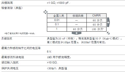 | 100.0000?nA5 | 5?pA | 0.060%?+?150?pA | 500?fA | 100?fA | <100?微伏 | 0.060%+?100?帕 |
