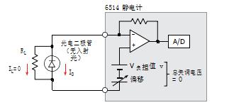 當(dāng)測量來自諸如光電二極管之類的設(shè)備的暗電流(圖 1)時, 電流表讀取兩個不同電流之和。第一個電流是檢測器產(chǎn)生的暗 電流(ID),沒有光照射到設(shè)備上(換句話說,就是感興趣的信號);第二個是電流表端子上出現(xiàn)的電壓負(fù)擔(dān)(V負(fù)擔(dān))產(chǎn)生的泄漏電流(IL)。在反饋電流表中,主要的“電壓負(fù)擔(dān)”是放大器的失調(diào)電壓。該泄漏電流表示誤差電流。不使用抵消技 術(shù),IL= V?負(fù)擔(dān)/?RL。圖 2?說明了 6514?型調(diào)整了 CAL V 抵銷以將V?負(fù)擔(dān)抵消到幾微伏的電壓噪聲水平內(nèi),因此測得的電流僅為真正的暗電流(ID)的光電二極管。以類似的方式,也可以抵消偏置電流。早期的靜電計(jì)使用內(nèi)部數(shù)字校正技術(shù),其中仍然存在電壓負(fù)擔(dān),因此測得的暗電流包括誤差項(xiàng) IL= V 負(fù)擔(dān)/ RL。