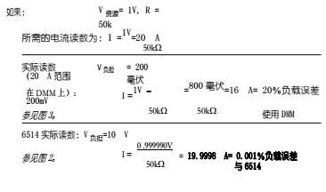 下面的示例將DMM?的電壓負(fù)擔(dān)誤差與 6514?的誤差進(jìn)行了比較。