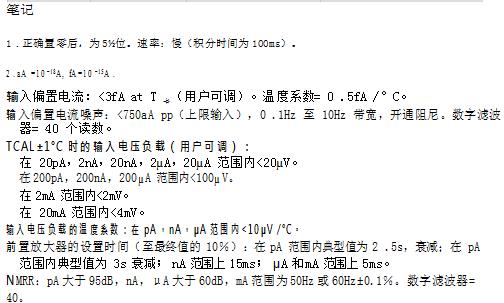 預(yù)放大器設(shè)置時間(在<100pF 輸入電容時達(dá)到最終讀數(shù)的 10%):2k ?至 200k :2ms;20M 200M :90ms。2G 至 200G :1s。
