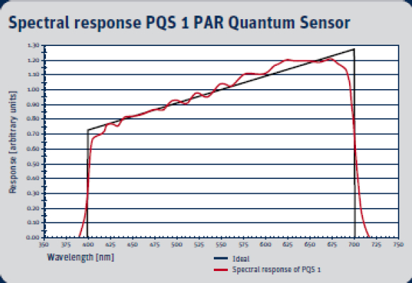 定義的,在這個區(qū)域內(nèi)的光子被等量的吸收。“藍(lán)”光子相對較短的波長(高頻率)比‘紅色’長波長有更多的能量。光合有效的量通常表示為光合光量子通量密度(PPFD):摩爾/m2·s。