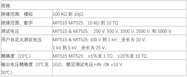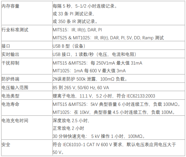 SebaKMT賽巴 美國MEGGER MIT515/525絕緣電阻測試儀產(chǎn)品技術(shù)參數(shù):