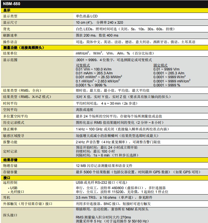 德國Narda NBM-550 寬帶電磁輻射分析儀 相關(guān)參數(shù):