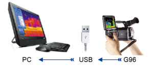G96既可以保存紅外圖像,也可以通過USB連接將帶溫度數據的紅外圖像,視頻實時傳輸到電腦上。通過電腦軟件SatIrReport PRO,可以對紅外視頻進行播放和分析。