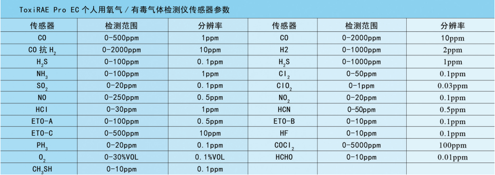 美國華瑞 RAE ToxiRAE Pro EC個人氧氣/有毒氣體檢測儀,PGM1860 相關參數(shù):