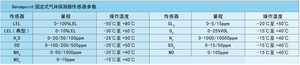 霍尼韋爾 Sensepoint 固定式氣體探測器 相關參數: