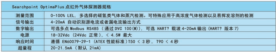| Sieger Searchpoint Optima Plus固定式點紅外氣體探測器技術參數(shù) | |