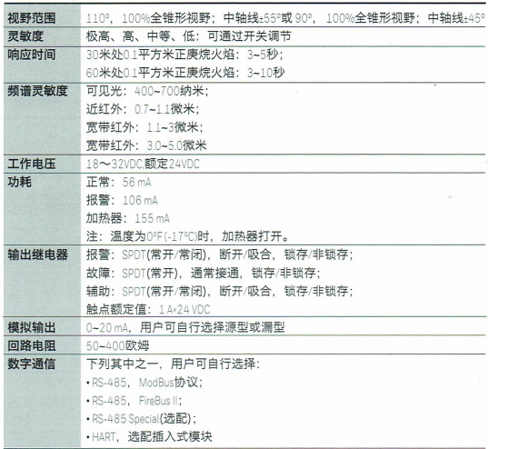 霍尼韋爾 FS24X火焰探測(cè)器 相關(guān)參數(shù):