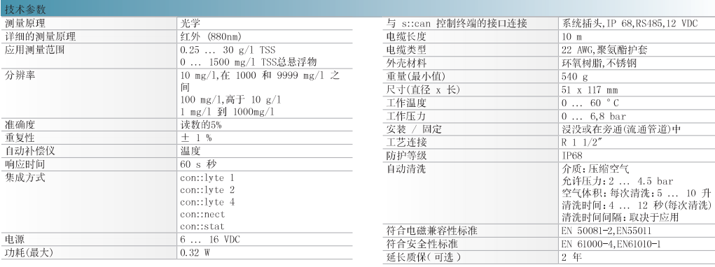 奧地利是能S::CAN soli::lyser總懸浮物分析儀 相關(guān)參數(shù):