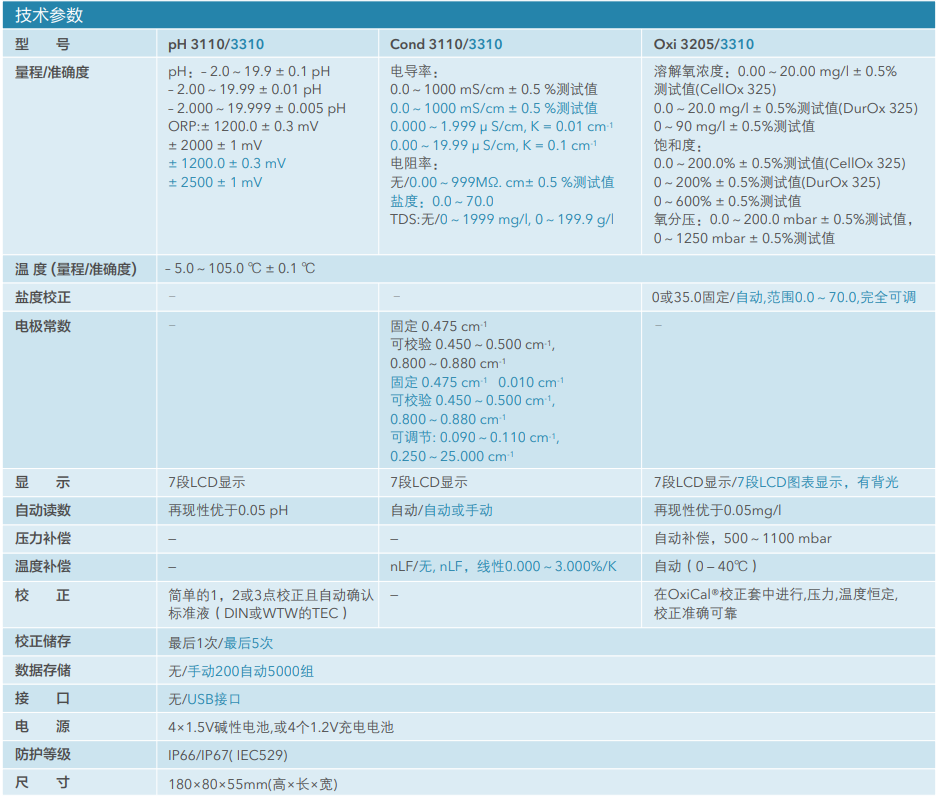 賽萊默XYLEM ProfiLine 便攜pH/ORP/電導(dǎo)率/溶解氧單參數(shù)分析儀產(chǎn)品技術(shù)參數(shù):