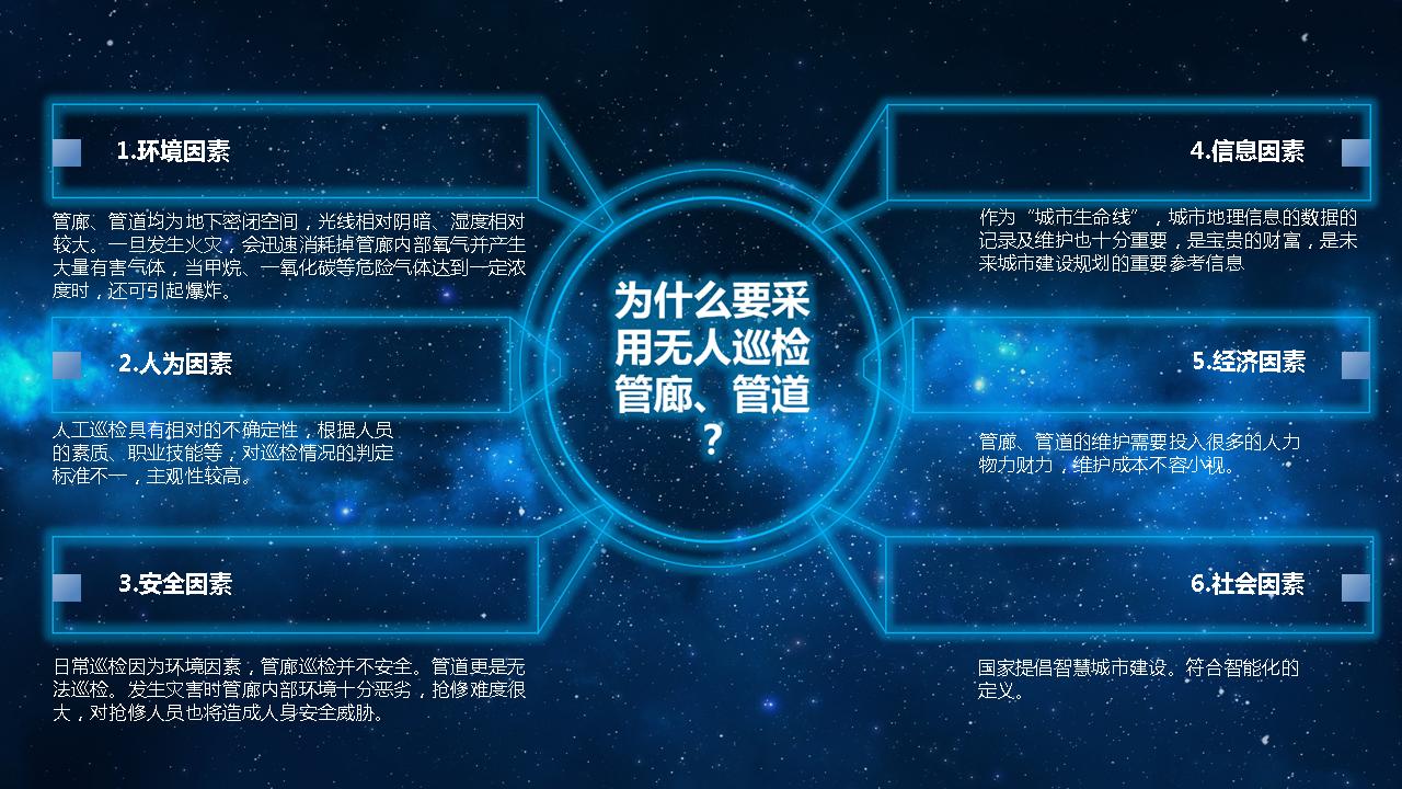 作為城市運行的生命線,地下綜合管廊承載信息與能源的傳輸重任,同時也形成未來都市的地下高速網(wǎng)絡(luò)。管廊內(nèi)苛刻的環(huán)鏡紛雜的設(shè)施,使傳統(tǒng)的人工巡檢已無法滿足安全運維和災(zāi)害應(yīng)急工作。傳統(tǒng)管道機器人從20世紀(jì)末傳入中國,雖說在一定程度上解決了我國的管道檢修問題,但這種亡羊補牢式的維護,治標(biāo)不治本、且如果未來我國要對全城管道進行年檢,投資成本將無法估量,政府無力承擔(dān),所以說傳統(tǒng)的管道機器人已經(jīng)無法滿足中國現(xiàn)代城市管理的需求。2015年國務(wù)院允許民營資本進入城市基礎(chǔ)設(shè)施建設(shè),我國管廊建設(shè)已經(jīng)進入如火如荼的階段,截止目前為止,多個城市試點已基本完成,這一大前提下,USR優(yōu)系統(tǒng)應(yīng)用而生-管廊軌道式巡檢機器人。
