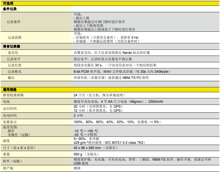 德國NARDA NBM-550超寬頻電磁輻射分析儀產品技術規格: