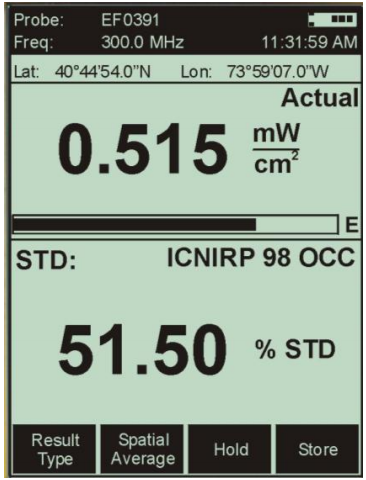 標準采用:當使用計權探頭測量時,通過簡單地設置頻率并選擇 NBM-550 內置的標準(如 ICNIRP 標準),就可得到計權測量結果。如果場強來源主要是已知的某個單一頻率,這種評估非常有用。即使使用普通探頭進行測量,也可以顯示相對于標準限值的百分比結果。
