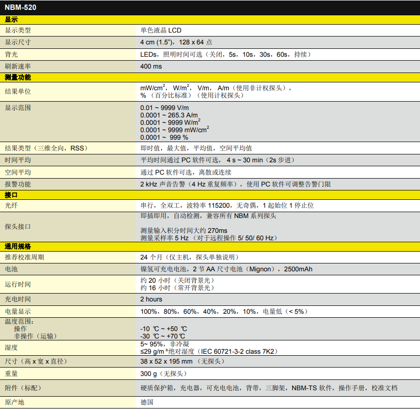 德國NARDA NBM-520寬頻電磁輻射分析儀產(chǎn)品技術(shù)規(guī)格: