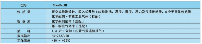 芬蘭Environics ChemProHT手持式化學(xué)戰(zhàn)劑探測(cè)器 相關(guān)參數(shù):