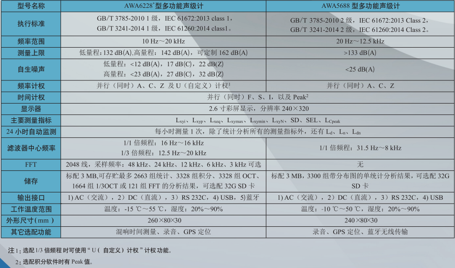 杭州愛華 AWA6228+/AWA5688型多功能聲級計 相關參數(shù):