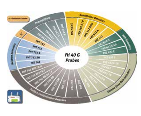 FH 40 G系列新一代便攜式探測儀具有多種不同用途的α、β、γ、X、中子的綜合測量功能,功能強大的操作軟件和種類齊全的外部智能化探頭,應用廣泛,可滿足各領域的最高要求。