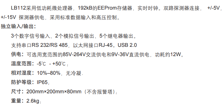 LB112為支持單/雙路獨立探測器或高/低劑量率同時測量的監(jiān)測系統(tǒng),軟鍵控制菜單、界面友好易操作。供電可選用85V-264V交流供電和9V-36V直流供電,多達4000個數(shù)據(jù)存儲點可通過兩個接口傳輸至外界PC,內(nèi)置RS485串口,支持RJ-45以太網(wǎng)接口和USB接口。