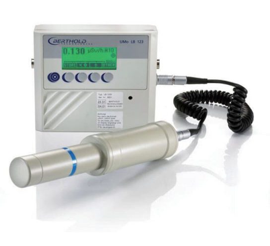 便攜式環境劑量率測量儀LB123D由顯示主機LB1230和能量補償正比計數管探測器LB1236組成,非常適合測量從本底到10mSv/h的低放射性水平劑量率。主機LB1230可選擇劑量率模式和計數率模式,顯示單位分別為μSv/h和cps。