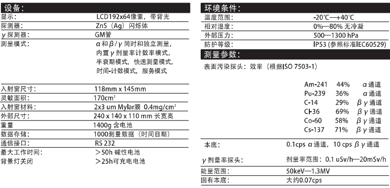 可同時(shí)顯示α和β/γ污染值和γ劑量率值