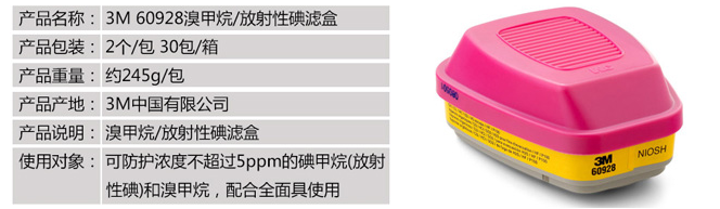 60928溴甲烷/放射性碘濾盒及P100顆粒物濾棉:可防護濃度不超過5ppm的碘甲烷(放射性碘)和溴甲烷,配合防毒面具使用。