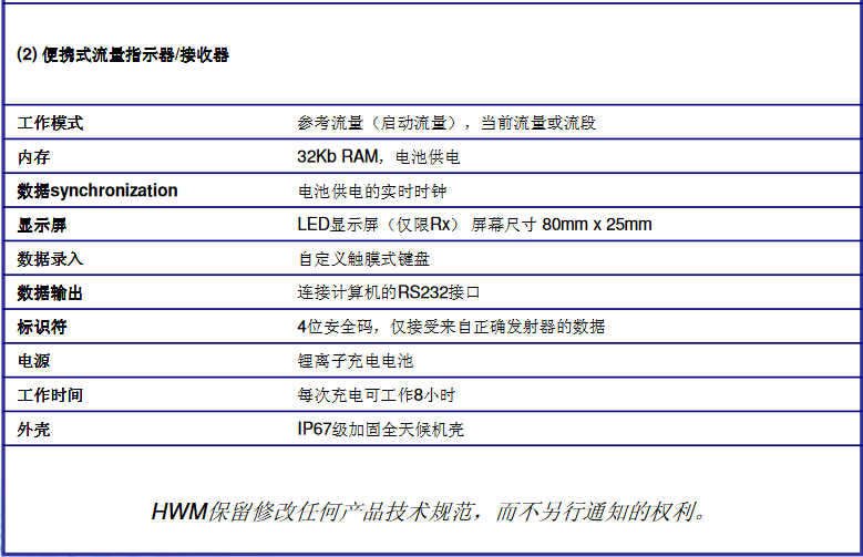 ■ 一套便攜式流量指示器/記錄儀,配備內置的無線電接收器。