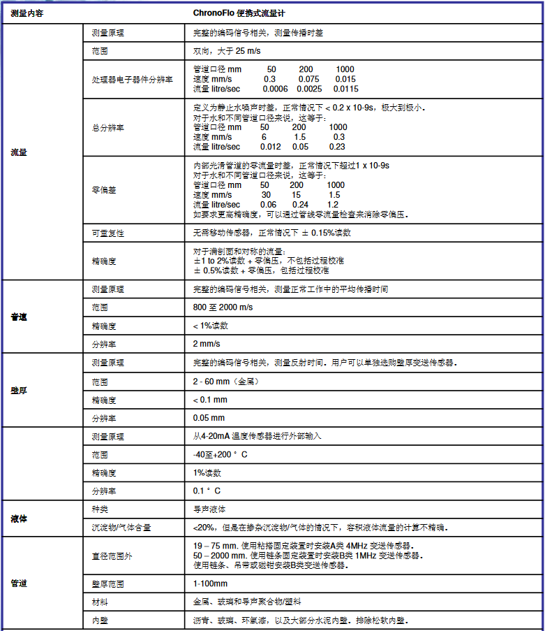 英國HWM(豪邁) ChronoFLO超聲波夾持式流量計產(chǎn)品技術(shù)參數(shù):